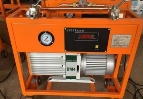 4)最有用最專業的辦法,是SF6抽真空補氣設備,單級旋片泵極限真空度能夠到達10Pa,雙級旋片泵理論極限真空度可到達6.2*10-4pa,但是流量不大于100m3/h;