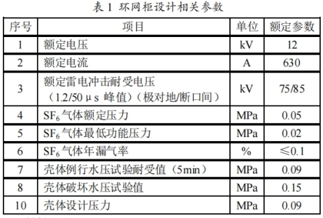 環(huán)網(wǎng)柜殼體形狀不同有箱式和筒式之分。由于箱式結(jié)構(gòu)有利于完成進出線.配電方案的施行,但是箱式在承受壓力的局限性,使箱體不能夠承受太高的壓力。下面介紹一種環(huán)網(wǎng)柜氣箱的規(guī)劃辦法。與氣箱規(guī)劃有關(guān)的環(huán)網(wǎng)柜額外參數(shù)見表1。