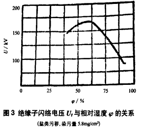 電纜分支箱地處交通要道,背靠山坡,面向公路,塵土很大,絕緣子表面的積塵較多,在污層受潮時。其間所含可溶性鹽類及酸堿成分溶解于水中,使表面電導率驟增,泄露電流許多增加,大大下降閃絡電壓。一般說來,絕緣子的污閃電壓隨其污染程度的增加而下降。污染嚴峻時,跟著污染程度繼續增加,污閃電壓的下降已很緩慢,但這時污閃電壓常?,F已低于作業電壓了。單調污穢的電阻較大,它并不下降絕緣子的閃絡電壓,一般當空氣相對濕度小于50%~70%時,沿面閃絡電壓不會下降;高于這數值時,跟著濕度增加,閃絡電壓敏捷下降,如圖3所示。實踐作業中,絕緣子污閃事端都發生在霧、露、陰雨連綿等高濕度的氣候.由于在這種條件下、積塵中水深性的鹽類溶解,使污層成為了半導體,大大增加泄露,下降閃絡電壓。本次事端正值當地千載一時的大雨期間,而開關柜柜體的密封較差,柜內相對濕度已達90%以上,開關柜的操作安排安排嚴峻腐蝕,以至于徹底不能正常操作,由臟污沿面放電的進程的評論可知,污層的電阻越大,泄露電流越小,放電翻開越困難,閃絡電壓也相應行進。在相同污染和濕潤條件下,介質表面形狀、南北極間的沿面最短距離即泄露距離是影響表面電阻和閃絡電壓的重要要素。泄露距離增加,污閃電壓也增加。不同成都的污穢情況對線路及變電站絕緣的影響程度是不同的,因而應依據不同的污移情況,選用相應的絕緣標準保證電網安全作業"?,F在,我們用泄露比距來估計臟污條件下絕緣子的耐污功用。由于我局所轄電網為渝中區,被定為三級污區,按變電站設備考慮泄瀾比距應大于4cm/MkV。